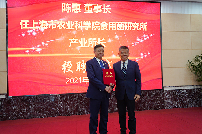 2021年3月22日,上海市農業科學院食用菌研究所與江蘇安惠生物科技有限公司共同成立“聯合科技創新中心”舉行揭牌儀式。會上,安惠公司董事長陳惠受聘該院食用菌研究所產業所長。