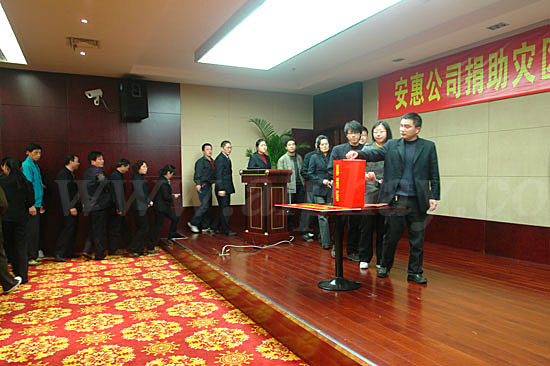 2008年5月12日,安惠公司全體員工和來自全國各地的安惠經(jīng)銷商踴躍為災(zāi)區(qū)人民捐款