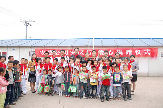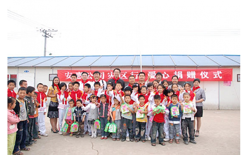 2009年5月14日,安惠公司為德陽市綿竹拱星小學(xué)的孩子們送去“愛心包裹”