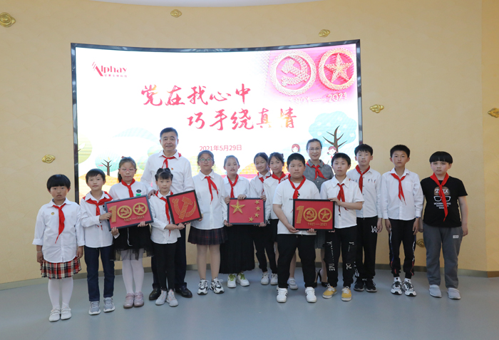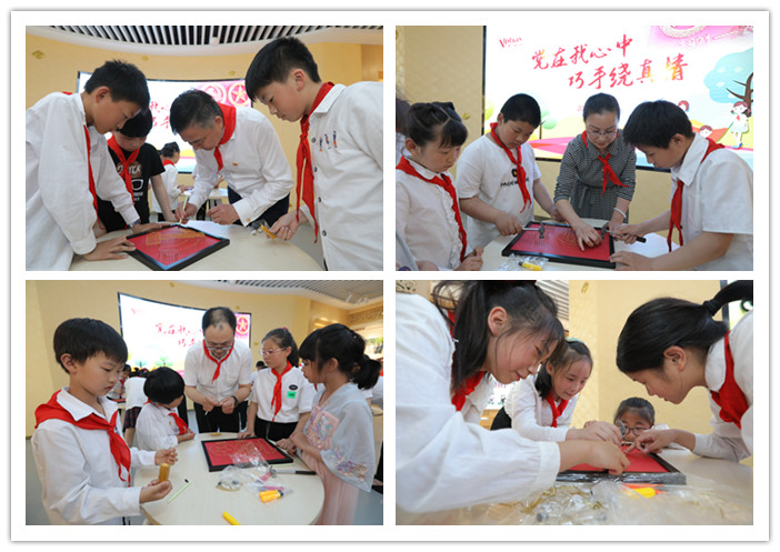 安惠江海志愿者還精心準備了“黨在我心中,巧手繞真情”的釘子繞線畫活動,用特殊的方式獻禮建黨100周年。陳惠董事長、陸漢萍副董事長、安惠江海志愿者陪同孩子們一起,用一個個釘子、一圈圈繞線做成黨旗、國旗、建黨100周年LOGO等,歌頌中國共產(chǎn)黨的光榮歷史和豐功偉績,表達偉大祖國繁榮昌盛的美好祝愿。
