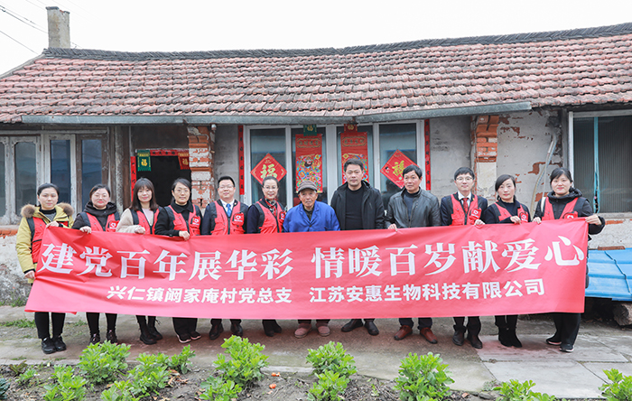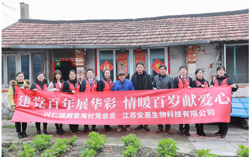 2021是中國共產(chǎn)黨建黨100周年,在這個特殊的年份,安惠黨委、工會、團委聯(lián)合組織開展愛心“雙百”暨菌物健康科普走進美麗鄉(xiāng)村志愿服務(wù)活動。安惠公司是省市區(qū)三級文明單位,2020年,為進一步落實省文明辦、省農(nóng)業(yè)農(nóng)村廳的工作要求,在南通市文明辦的牽頭下,安惠聯(lián)合工會與通州區(qū)興仁鎮(zhèn)闞家庵村結(jié)對,開展精神文明共建。