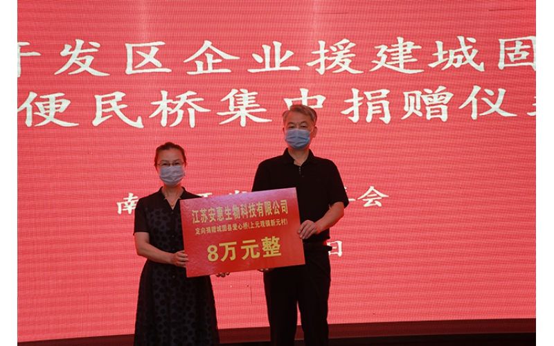 陜西省漢中市城固縣是南通開發(fā)區(qū)對口扶貧地區(qū),為鞏固已取得的階段性協(xié)作成果,進一步助力鄉(xiāng)村振興,在已經(jīng)援建城固縣山區(qū)7座便民橋的基礎(chǔ)上,今年再捐建12座便民橋。8月,開發(fā)區(qū)慈善會發(fā)出《關(guān)于定向捐贈漢中市城固縣山區(qū)便民橋建設(shè)征集函》,得到了廣大企業(yè)界的積極響應(yīng),短短3天時間共收到包括安惠公司在內(nèi)的12家企業(yè)的定向捐贈回函。